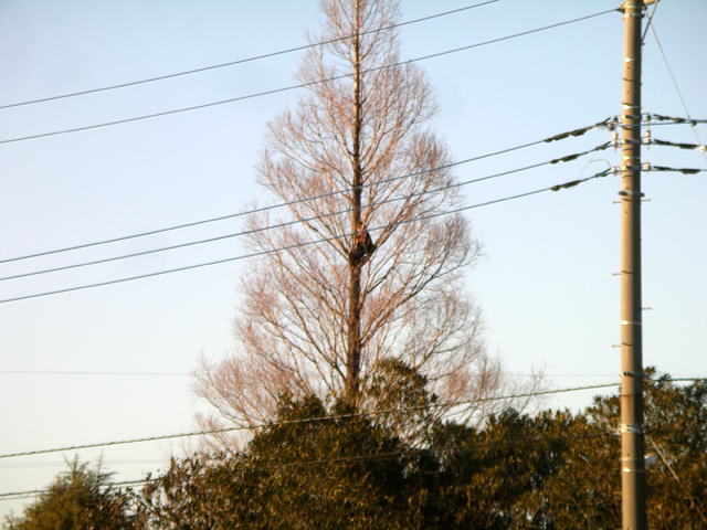 公園を通りかかったところ、木の上に何やら影が動いていました。