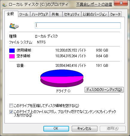 ちなみに新規インストールでだいたい9GBくらいHDD容量食います。