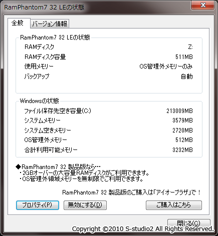 「RAM Phantom7」LE版を急遽ダウンロード。
