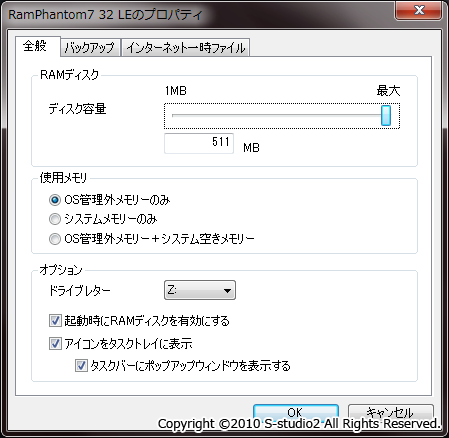 うちのPCはOS管理が4GB中3.5GBなので、残りの500MBをRAM Disk化すれば有効利用