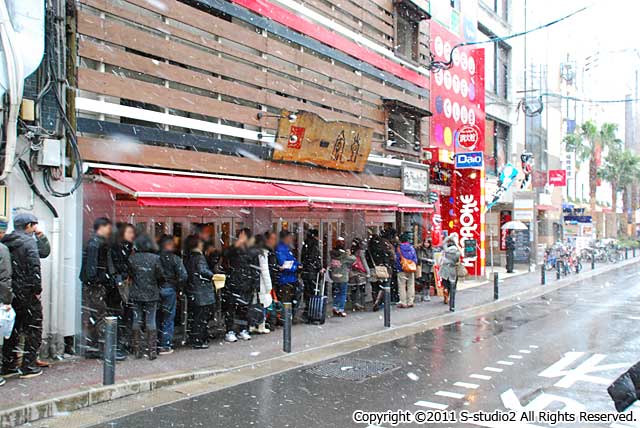 で、総本店。見つけたんですが、行列ですよ。雪の中。