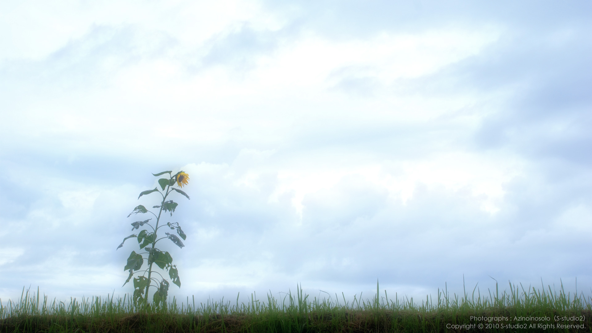 2010年の夏は猛暑。春先に続いた長い雨と寒さからうって変わって、猛烈な暑さとなりました。そんな暑い夏でしたが、初夏のころに雨上がりの風に揺れる、一輪の向日葵(ひまわり)を撮影しました。