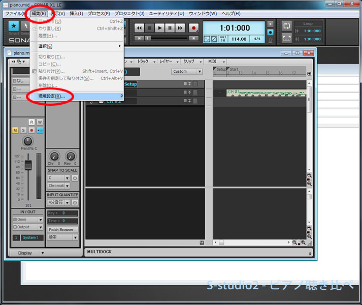 Cakewalk SONAR X1でのお題MIDIの取り込み方について - 特集:徹底比較!DTM音源ピアノ音色聴き比べ - S-studio2